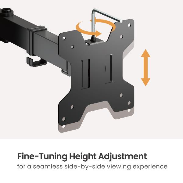 Ogni braccio del monitor è dotato di un design completamente articolato che consente una regolazione fluida dell’altezza, dell’inclinazione, dell’orientamento e della rotazione. Questa regolabilità indipendente consente un posizionamento preciso dello schermo, aiutando gli utenti a ottenere angoli di visione ottimali e a ridurre l’affaticamento del collo, delle spalle e degli occhi durante lunghe sessioni di lavoro o di gioco. Sono supportati sia l’orientamento verticale che quello orizzontale, offrendo flessibilità per il multitasking, la codifica, la revisione di documenti o la creazione di contenuti.