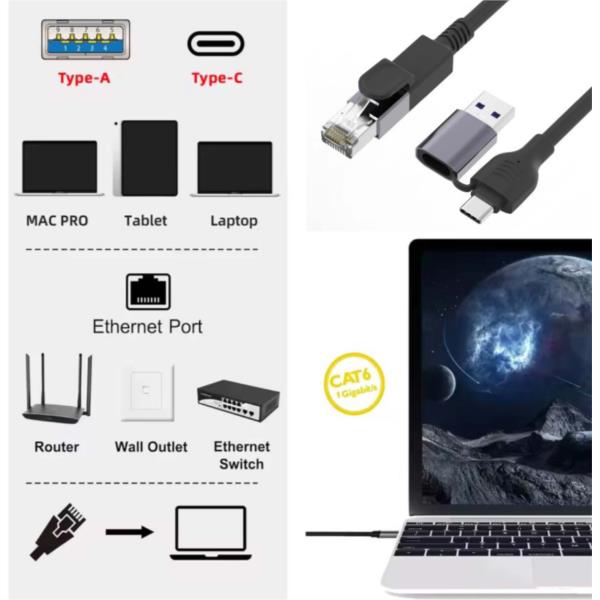 Il cavo Gigabit Ethernet 2-in-1 da USB-C + USB-A a RJ45 offre una soluzione comoda e affidabile per aggiungere la connettività di rete via cavo a un’ampia gamma di dispositivi. Dotato di connettori sia USB-C che USB-A, questo cavo versatile consente di collegarsi facilmente a laptop moderni, tablet e computer di vecchia generazione senza bisogno di adattatori aggiuntivi.