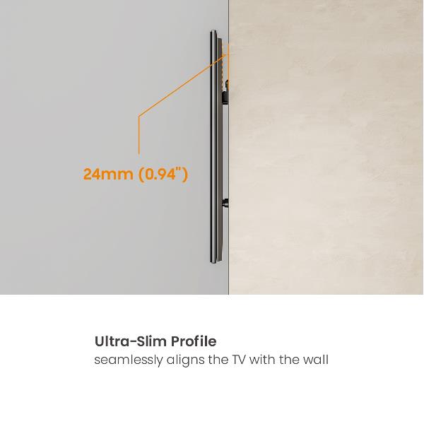Progettato per supportare una vasta gamma di televisori di dimensioni comprese tra 32“ e 100”, questo supporto a parete è compatibile con la maggior parte degli standard di montaggio VESA e funziona con schermi LED, LCD e OLED. La sua struttura in acciaio rinforzato offre una resistenza, una stabilità e un’affidabilità a lungo termine eccezionali, anche per televisori molto grandi e pesanti.