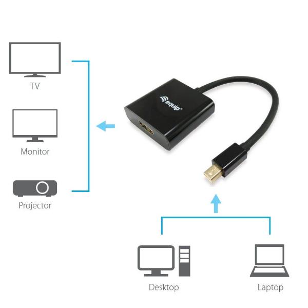 L’adattatore equip® Mini DisplayPort a HDMI è la scelta più economica per collegare le interfacce DisplayPort e HDMI. Composto da materiali di alta qualità, questo adattatore collega i dispositivi con interfaccia DisplayPort come PC e laptop a un display con interfaccia HDMI o viceversa. Non è necessario acquistare un altro schermo per la distribuzione.