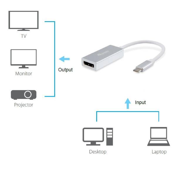 L’adattatore equip® USB da Tipo C a DisplayPort consente di stampare video DisplayPort da un dispositivo USB di tipo C come MacBook, Chromebook, ecc. L’adattatore funziona con dispositivi USB di tipo C che passano un segnale video DisplayPort e supporta risoluzioni video fino a 4096×2160.