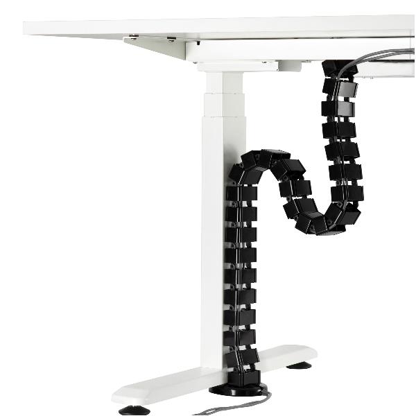 La canalina per cavi equip® instrada i cavi dal pavimento alla scrivania e fornisce protezione meccanica e scarico delle tensioni. La struttura verticale della canalina consente la segregazione dei cavi di alimentazione e di dati.