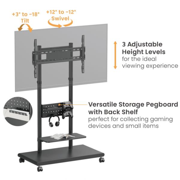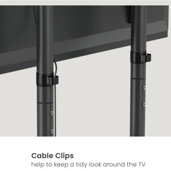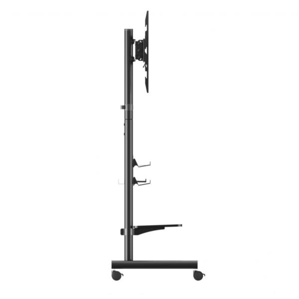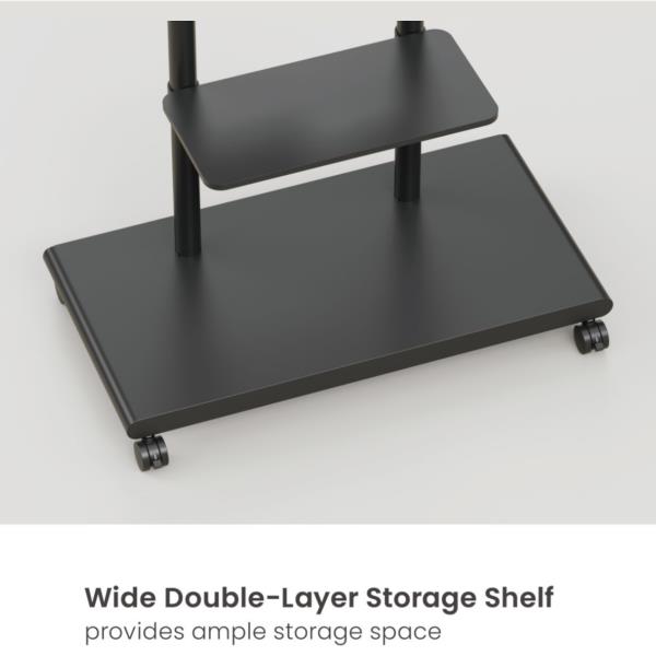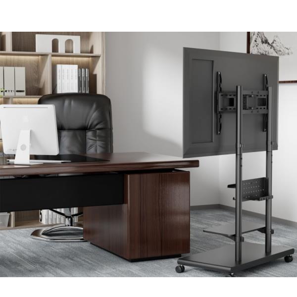 Dotato di ruote bloccabili per carichi pesanti, il carrello può essere facilmente spostato e posizionato in modo sicuro in qualsiasi luogo. Le staffe di montaggio regolabili in altezza e il sistema di gestione dei cavi aiutano a mantenere un allestimento pulito e professionale. Ideale per presentazioni interattive, segnaletica digitale o riunioni collaborative, questo supporto TV mobile combina flessibilità, mobilità e funzionalità, offrendo una soluzione pratica e completa per le moderne esigenze di esposizione.