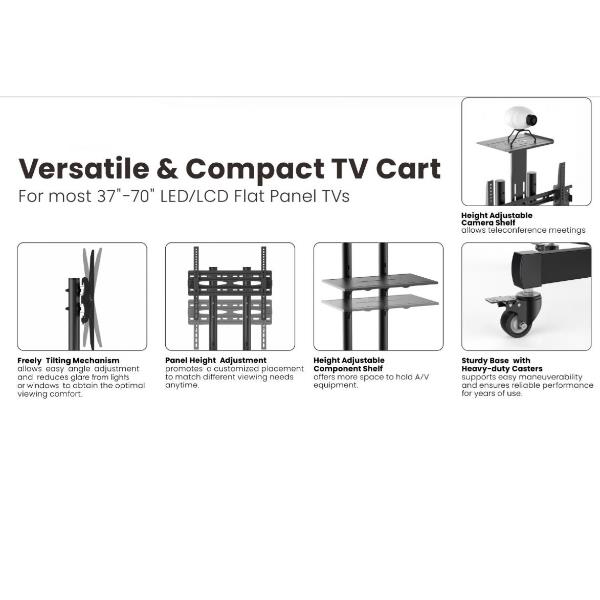 Il carrello supporto per singola TV di equip® con un design elegante, tecnico e funzionale è stato progettato per fornire una solida soluzione di presentazione per la maggior parte dei televisori a LED a schermo piatto LCD. Le sue staffe TV a schermo piatto in verticale consentono una regolazione in altezza senza sforzo per soddisfare le diverse esigenze di visualizzazione in qualsiasi momento. L’inclinazione libera consente una facile regolazione dell’angolo e riduce l’abbagliamento da luci o finestre per ottenere il massimo comfort di visione. La solida base offre ulteriore sicurezza rimuovendo la possibilità di inciampare e garantisce prestazioni affidabili per anni di utilizzo. La gestione interna dei cavi nasconde i fili alla vista per mantenere un aspetto privo di ingombri. Ideale per conferenze, esposizioni pubbliche o altre presentazioni professionali.