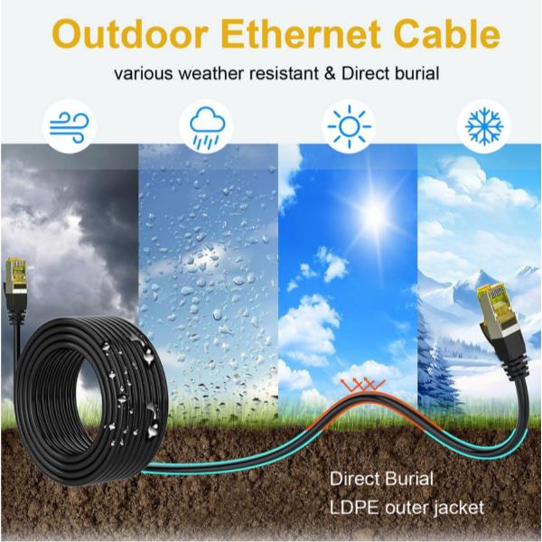 Dotato di schermatura S/FTP avanzata, il cavo riduce al minimo la diafonia e le interferenze elettromagnetiche, garantendo una connessione stabile e affidabile per applicazioni ad alta intensità di dati come streaming video, giochi e cloud computing. La sua capacità di larghezza di banda di 10 Gbps supporta il networking ad alta velocità su lunghe distanze, rendendolo adatto per installazioni esterne commerciali e residenziali.