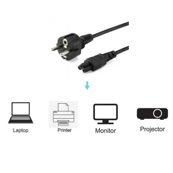 Cavo di alimentazione universale per notebook e dispositivi elettronici. Collega in modo sicuro e stabile la tua apparecchiatura alla presa di corrente, grazie alla spina Schuko e al connettore C5. La lunghezza di 3 metri offre ampia libertà di movimento e installazione.