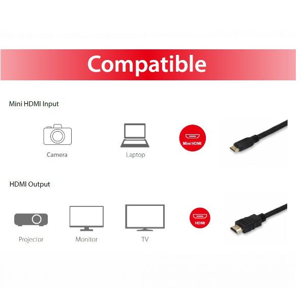 Il cavo HDMI ad alta velocità equip® offre una solida connessione dei segnali audio e video. Collegando le apparecchiature HDMI agli schermi con interfaccia HDMI tramite questo cavo, è possibile godere di video cristallini di alta qualità con facilità. Inoltre, il connettore mini HDMI (tipo C) consente di collegare gli schermi HDMI e i dispositivi mobili come DSLR, DV e smartphone.