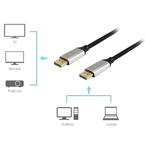 Questo cavo è certificato DisplayPort 8K e conforme agli standard VESA. È retrocompatibile con le versioni 1.1, 1.2 e 1.3, e supporta le tecnologie essenziali per i contenuti moderni come HDR, HDCP 2.2 e il trasporto di flussi multipli (MST) per configurazioni con più monitor.