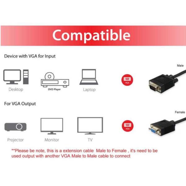 - Connessione universale: Connettori VGA (HD15) maschio e femmina per adattarsi a qualsiasi configurazione.