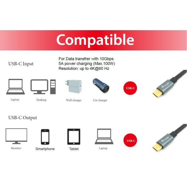 | Tipo connettore 2: USB-C | Output supportato: 5 A | Lunghezza cavo: 1 m |