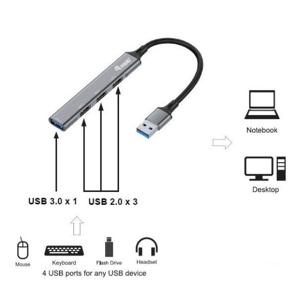 Questo hub a 4 porte USB 3.2 Gen 1/2.0 consente di espandere il netbook, il notebook o il PC con 4 porte aggiuntive utilizzando solo una porta USB libera! È possibile aggiungere facilmente fino a 4 dispositivi o gadget USB al netbook, al notebook o al PC.