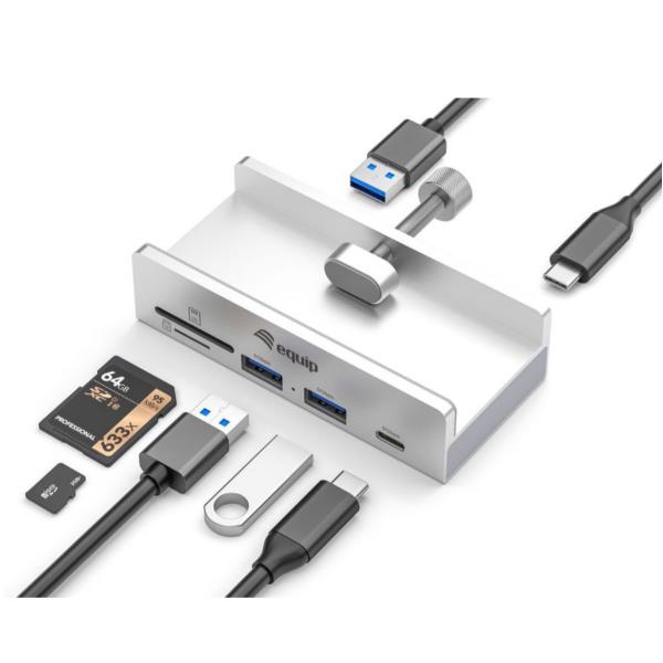 Il lettore hub USB clip-on a 5 porte Equip 128968 presenta un design elegante e salvaspazio e offre molteplici opzioni di connettività per massimizzare l’efficienza della scrivania. È dotato di due porte USB-A, una porta USB-C e due slot per lettore di schede SD e TF, che supportano un trasferimento dati ultraveloce fino a 5Gbps tramite le porte USB 3.2 Gen 1.