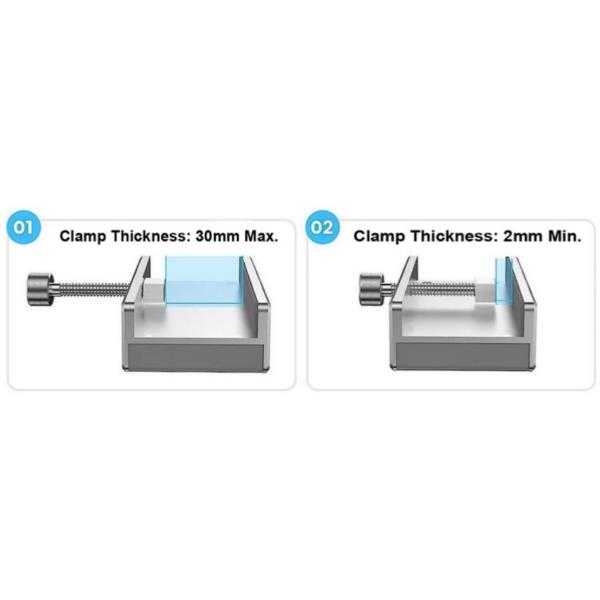 Il supporto a clip si fissa saldamente al bordo della scrivania o del monitor, liberando spazio di lavoro prezioso e fornendo un facile accesso alle porte. Il robusto design senza attrezzi funziona su superfici di qualsiasi spessore e garantisce una presa sicura durante l’uso.