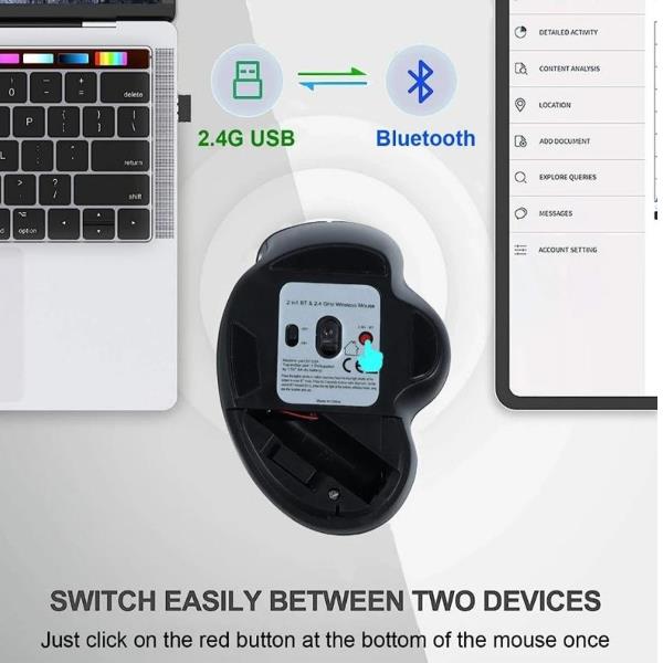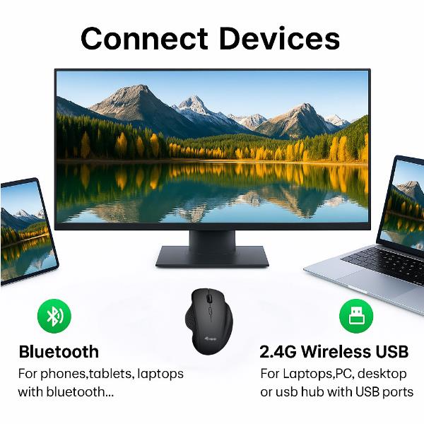 | Interfaccia mouse: Bluetooth + Wireless | Colore mouse: Nero | Ergonomico: Sì |