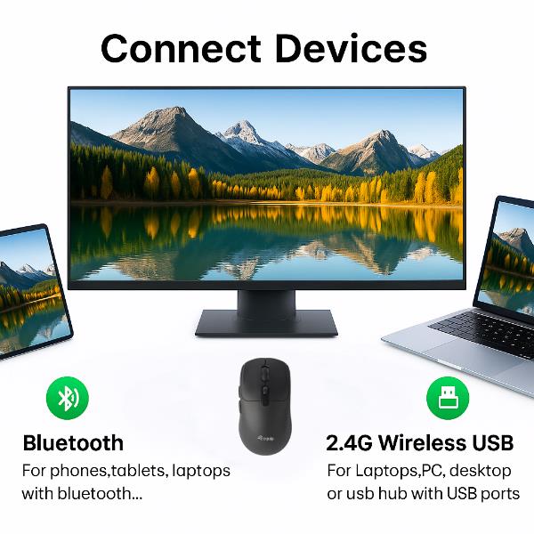 Migliora il tuo flusso di lavoro con questo mouse dual-mode, progettato per una facile connettività dual-mode. Abbina facilmente il mouse al tuo computer abilitato Bluetooth e collegalo tramite il nano ricevitore USB alla porta USB di un altro computer o laptop. Commuta e controlla facilmente il mouse tra due dispositivi. L’interruttore DPI ti consente di regolare istantaneamente la sensibilità con una breve pressione e cambiare la modalità di connettività con una pressione prolungata. Progettato per utenti destri e mancini, è il compagno ideale per qualsiasi area di lavoro.