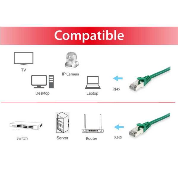 EQUIP PATCH CABLE CAT.6 S/FTP GREEN 10MT – CAVI FIBRA / ETHERNET / TELEF.