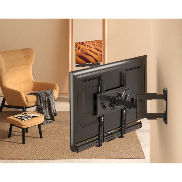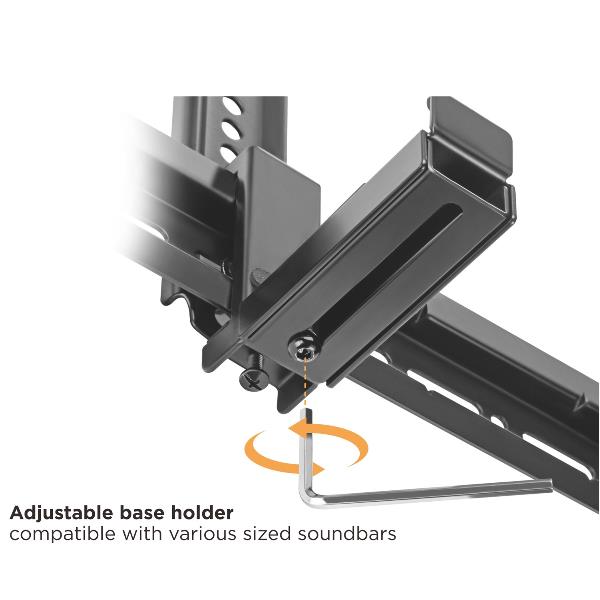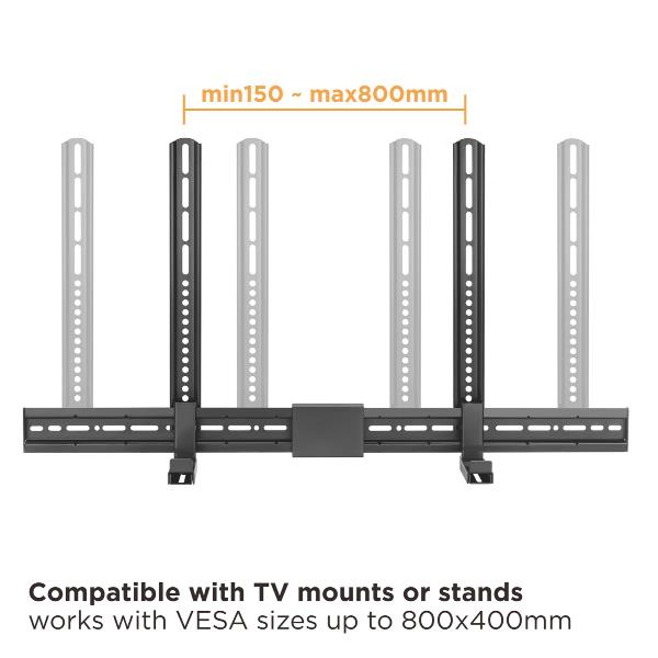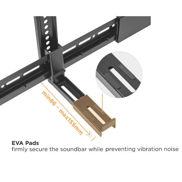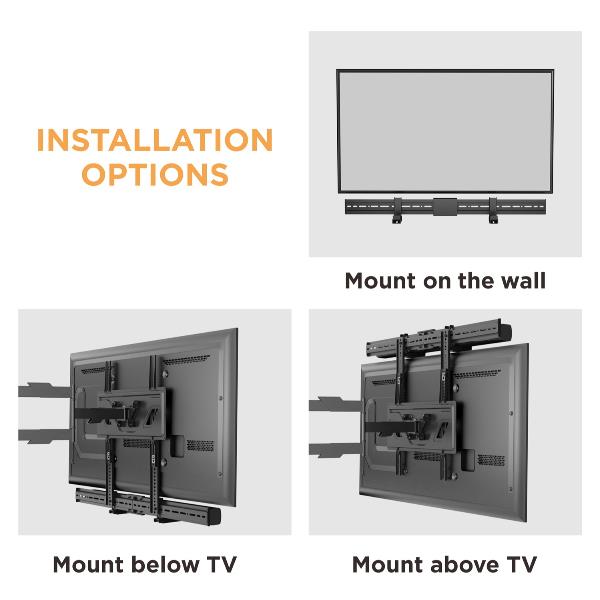 - Adattabilità totale: Compatibile con la maggior parte delle soundbar (larghezza 86-155 mm) e montabile sopra o sotto il televisore, grazie al design versatile e ai ganci anti-caduta.