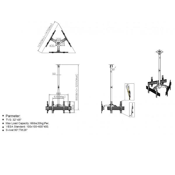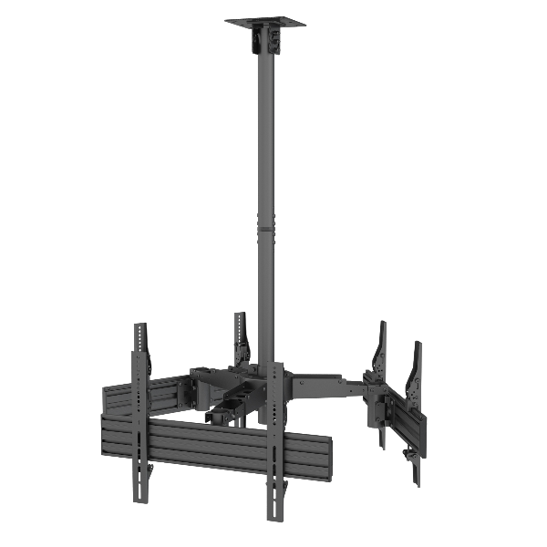 Il supporto per soffitto a tripla TV di livello industriale di equip è perfettamente adatto per applicazioni di segnaletica. La regolazione dell’inclinazione consente l’installazione con un’inclinazione precisa e uniforme di tutti e tre gli schermi per fornire le condizioni di visualizzazione ideali. La scelta ideale per la pubblicità.