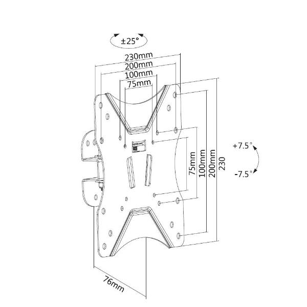 Altre informazionitilt range + 7,5° / - 7,5°, distanza parete / swivel range + 25° / - 25°, supporta TV /monitor da 23 a 42°