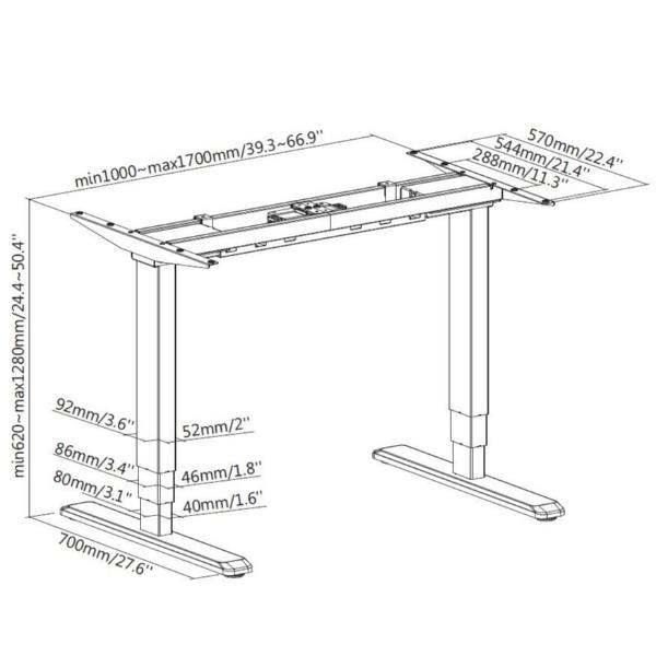 Il telaio elettrico per scrivania Sit-Stand equip® ERGO crea uno spazio personale per la scrivania che consente di alzarsi durante le lunghe giornate di lavoro grazie a un telaio elettrico regolabile in altezza. Stare periodicamente in piedi durante la giornata può aiutare ad alleviare la tensione di collo, schiena e spalle, oltre ad aumentare la circolazione sanguigna e ridurre lo stress. Questo robusto telaio è dotato di un sistema di sollevamento a doppio motore che consente di passare agevolmente all’altezza, di una regolazione telescopica dell’altezza per una visione ergonomica ideale, di un comando a sfioramento per impostazioni personalizzabili e comodità e di un solido supporto per le gambe per superfici di scrivanie fino a 275 libbre di peso.