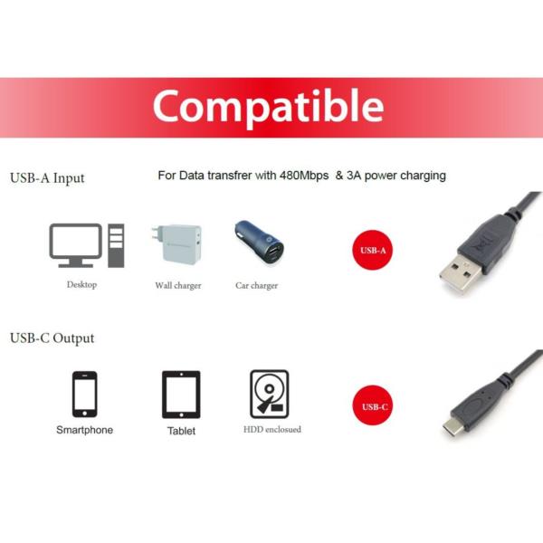 Il cavo USB 2.0 da USB-C a USB-A 128831 offre una soluzione affidabile per la ricarica e la sincronizzazione dei dati tra dispositivi USB-C e porte USB-A standard.