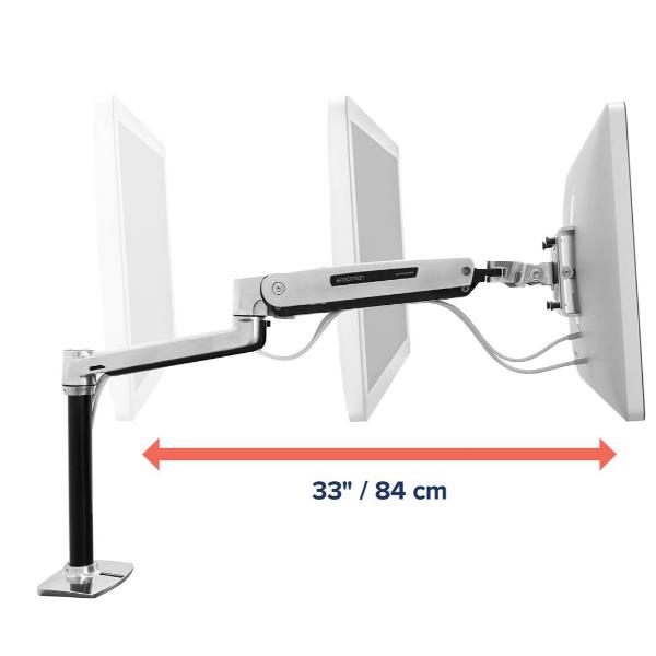 Si possono sistemare facilmente gli schermi o la segnaletica digitale nel punto in cui servono e in base a ciascun progetto, per poi recuperare altro spazio di lavoro ripiegando il braccio e sospingendolo a lato durante le pause dalla visualizzazione dello schermo estremamente necessarie.