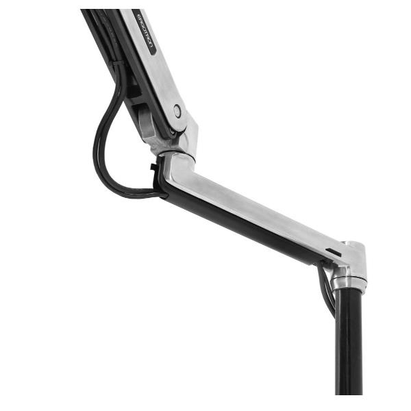 La gestione integrata dei cavi nasconde i fili sotto il braccio a scomparsa.