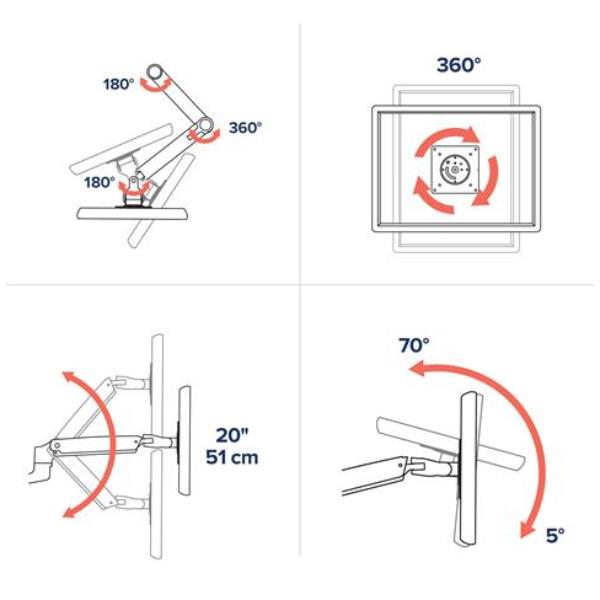 Consente un movimento completo del monitor e un’ergonomia ancora migliore.
