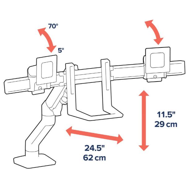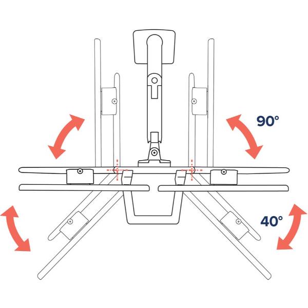 Regola ogni monitor in totale indipendenza: ruota, inclina e orienta ciascuno schermo con un semplice gesto, grazie ai perni a rapido rilascio. L’arco a cerniera ti permette di spostarli in panoramica con fluidità, ideale per condividere contenuti o trovare l’angolazione perfetta per il tuo comfort.