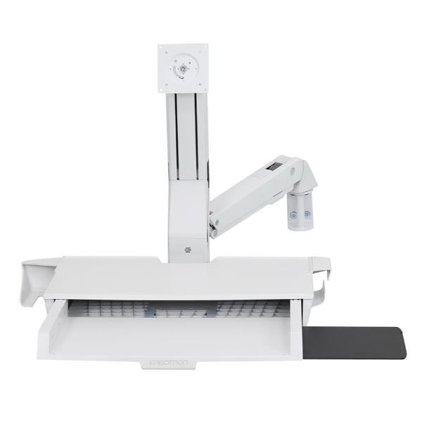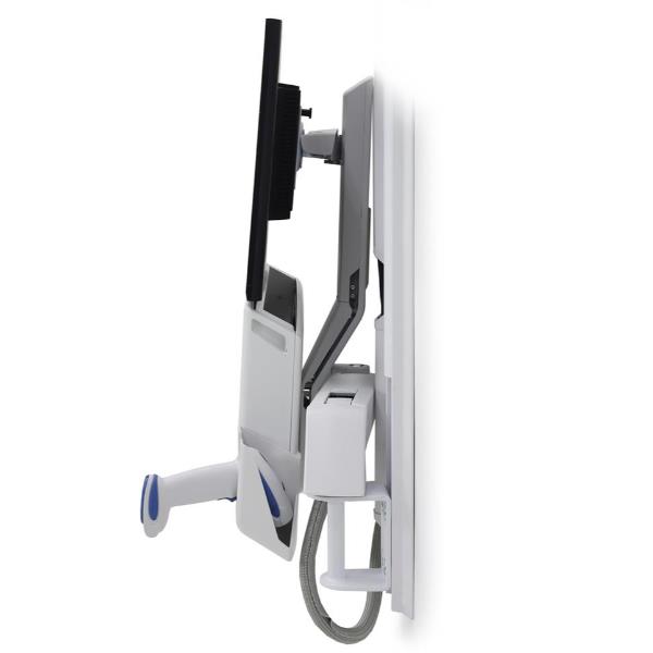 Trasforma la tua postazione di lavoro in un ambiente dinamico e sano. Questo braccio combinato è la soluzione definitiva per chi, soprattutto in ambienti sanitari o ad alta intensità operativa, desidera alternare agevolmente la posizione seduta a quella in piedi, mantenendo tutto l’occorrente perfettamente organizzato e a portata di mano.