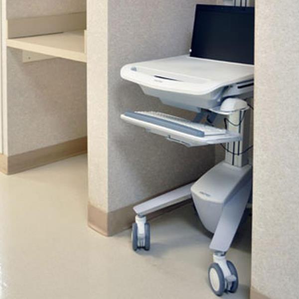 Questo carrello medico davvero ergonomico e leggero può essere spostato facilmente per tutta la struttura sanitaria per compilare comodamente la documentazione.