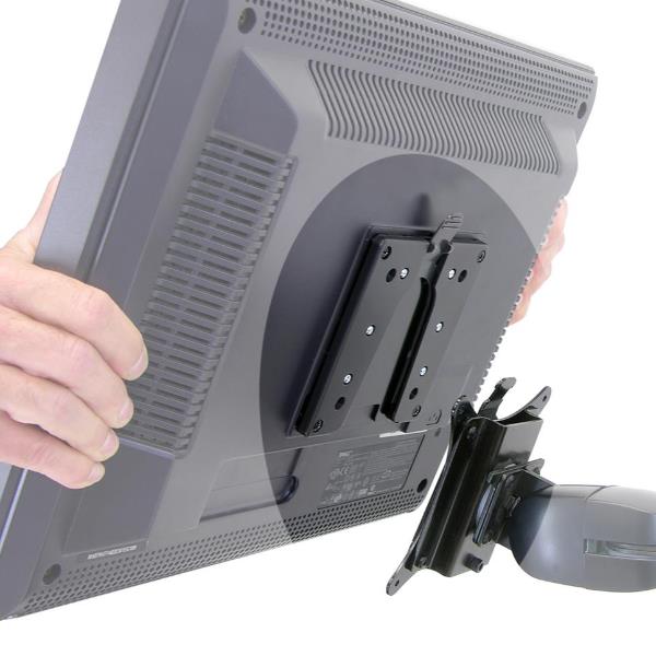 • Sostituite un display in pochissimi secondi con questo indispensabile accessorio: consente la rimozione rapida ed il collegamento di display ad un braccio, ad un supporto o ad un montaggio a parete Ergotron