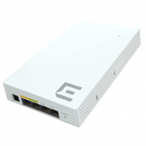 Punto di accesso e switch compatti con placca di classe enterprise con tecnologia IoT integrata, progettati per il montaggio a parete o su scrivania. Ideale per casi d’uso come camere d’albergo, navi da crociera, sale residenziali o altre implementazioni di unità abitative multiple.