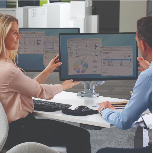 La staffa Fellowes a doppio braccio trasforma la tua scrivania in una postazione di lavoro ergonomica e organizzata. Supporta fino a due monitor da 39″ e 8kg ciascuno, offrendo totale libertà di regolazione per ridurre l’affaticamento e ottimizzare lo spazio. La finitura silver si integra perfettamente in qualsiasi ambiente professionale o gaming.