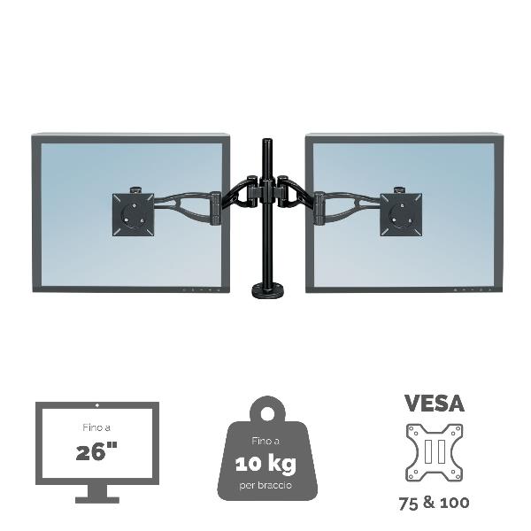 Staffa Monitor Doppia Fellowes Vista per Scrivania fino a 26″ 20kg