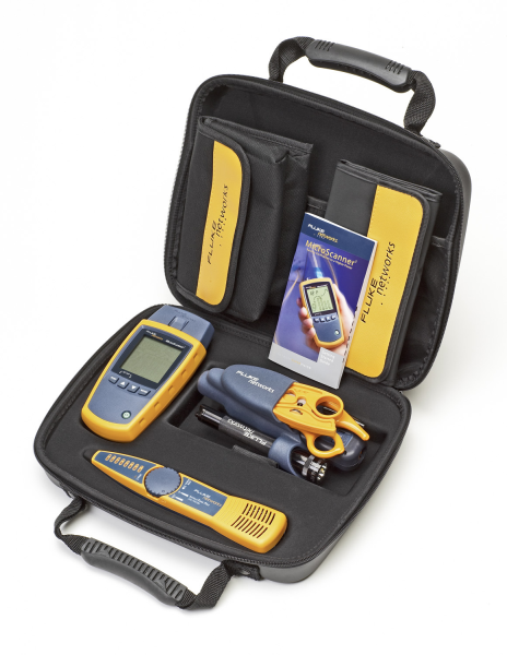 Tester Microscanner2 Kit. Bandle composto da: Microscanner2, IntelliTone Pro 200 Probe, Wiremap Adapter, Tool di crimpaggio cavi IS60, bretelle RJ45 e RJ11, batterie e custodia professionale