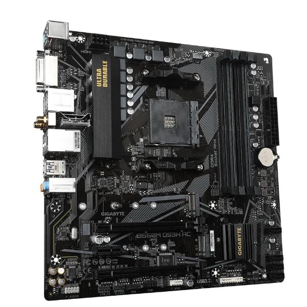 La scheda madre AMD B550M-DS3H AC è la base perfetta per un PC di fascia media-alta, pronta ad accogliere le ultime CPU AMD Ryzen™ serie 5000 e 3000 per offrirti tutta la potenza di cui hai bisogno.