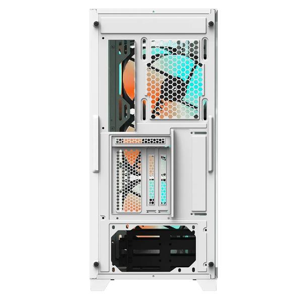 Un case che non si limita a contenere i tuoi componenti, ma che li valorizza. La sua struttura in vetro temperato full-size ti permette di ammirare il tuo sistema in ogni dettaglio, mentre il design studiato per il flusso d’aria garantisce che tutto rimanga fresco e performante anche sotto carico.