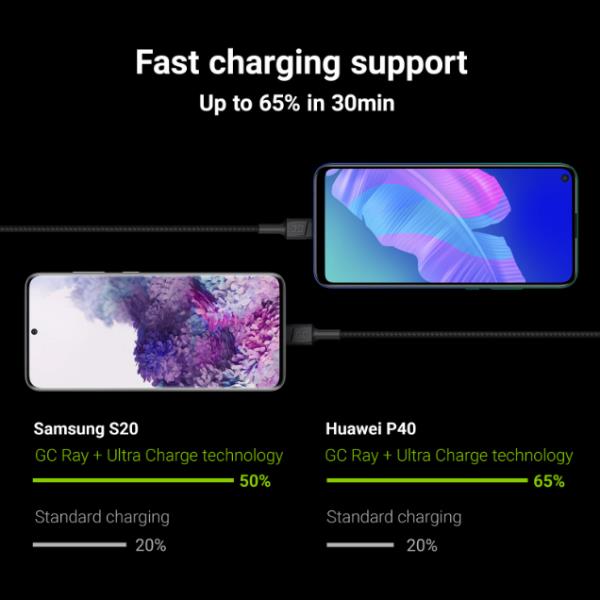 Grazie al supporto per la ricarica rapida, incl. Quick Charge 3.0, GC Ultra Charge, Samsung AFC, Huawei FCP / SCP e il cavo di trasferimento dati da 480Mps sono perfetti per i tuoi dispositivi moderni dotati di una porta USB di tipo C