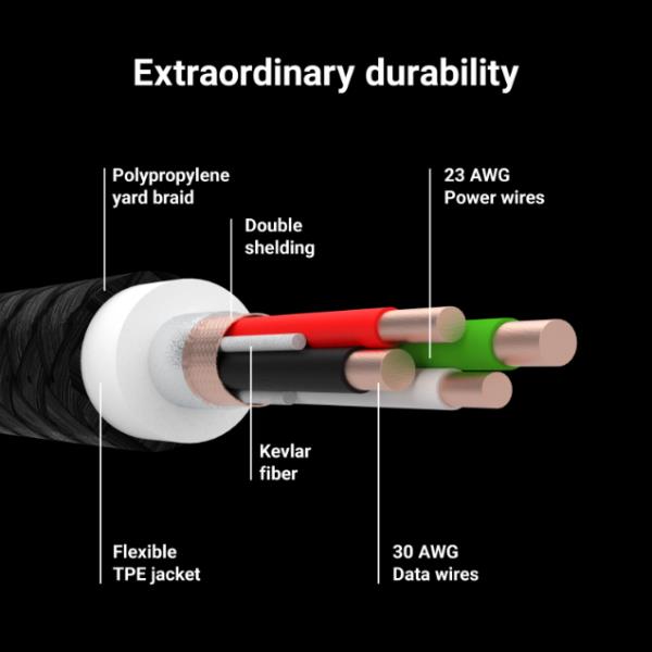 Durevole in ogni pollice: l’intera lunghezza del cavo è protetta dall’uso di materiali durevoli e moderni