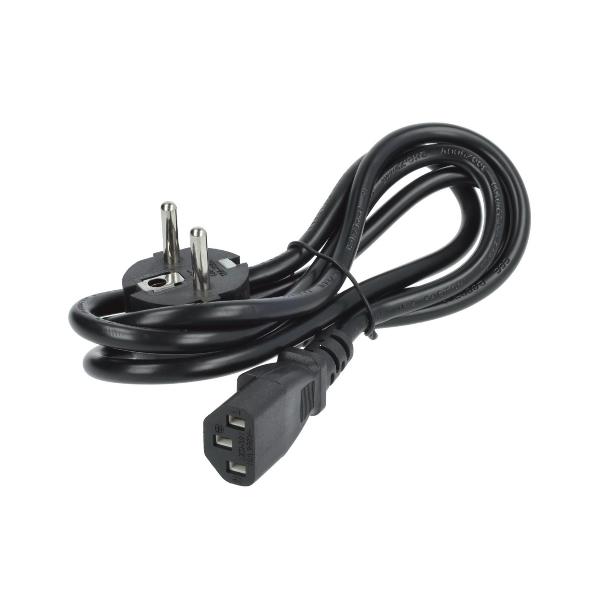 Cavo di alimentazione per computer e stampanti con spina Schuko maschio a 90° e presa C13 femmina. La lunghezza di 1,8 metri consente di raggiungere facilmente le prese di corrente. Cavo approvato VDE. Colore nero.