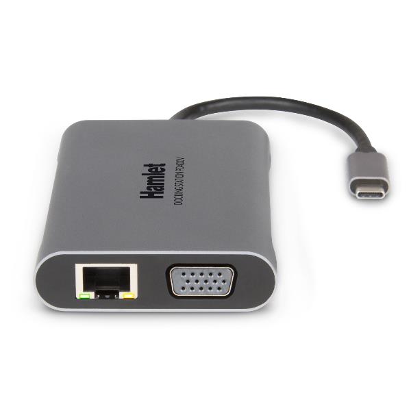 Trasforma il tuo notebook in una vera postazione di lavoro con questa docking station universale Hamlet. Grazie alla porta USB-C con Power Delivery da 85W, ricarichi il computer mentre colleghi monitor, tastiera, mouse e rete via cavo con un solo cavo. La soluzione perfetta per aumentare la produttività in ufficio o a casa, con un design compatto e resistente in alluminio.