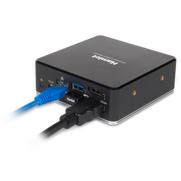 La Docking Station PD8000 di Hamlet consente di ampliare l’area di lavoro dello schermo e la connettività del notebook utilizzando un solo cavo USB Type-C. Le due uscite video HDMI con supporto Quad HD permettono di collegare due monitor esterni per duplicare o estendere il desktop del computer su schermi più grandi. Le tre porte USB 3.1 Gen 1 offrono connettività per dispositivi esterni come tastiere, mouse ed hard disk e supportano la ricarica di dispositivi come smartphone e tablet. Completano la connettività della docking station l’uscita audio da 3,5 mm e la porta di rete Gigabit per il collegamento alla rete LAN e Internet.