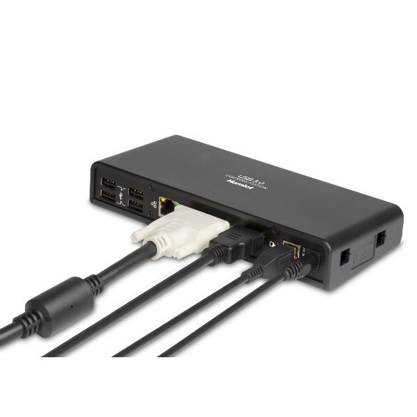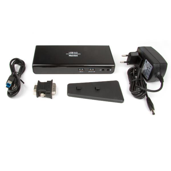 Lavori da un portatile e la tua postazione è un groviglio di cavi, con troppe periferiche e un solo schermo? La docking station USB 3.0 di Hamlet risolve tutto con un unico collegamento. Basta connettere un cavo al tuo notebook per trasformarlo in una vera workstation completa e potente.
