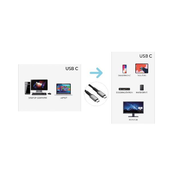 XCC-2005-15 è un cavo USB 3.2 Gen 2×2 Type-C che consente la connessione ultra veloce e la ricarica ad alta potenza di dispositivi USB-C come Notebook, Smartphone e Tablet. Il cavo supporta una potenza di ricarica fino a 5A 100W tramite protocollo USB Power Delivery e velocità di trasferimento dati SuperSpeed+ fino a 20 Gbps. Il cavo supporta inoltre risoluzioni video fino a 4K @ 60 Hz per la connessione a un monitor USB-C. Il design con rivestimento in cotone intrecciato e eleganti connettori in metallo è pensato per soddisfare le più svariate esigenze di connettività. Il cavo è lungo 1,5 metri.