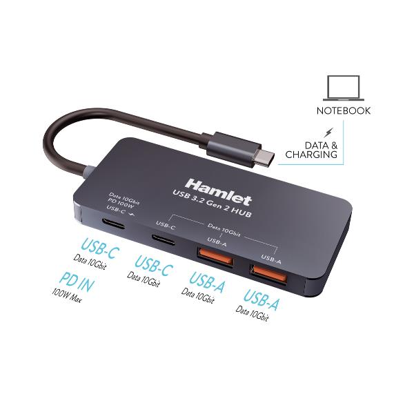 Ti serve più spazio per i tuoi dispositivi, senza rinunciare alla velocità? L’hub USB 3.2 Gen 2 di Hamlet è la soluzione compatta e potente che stavi cercando.