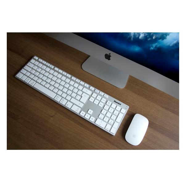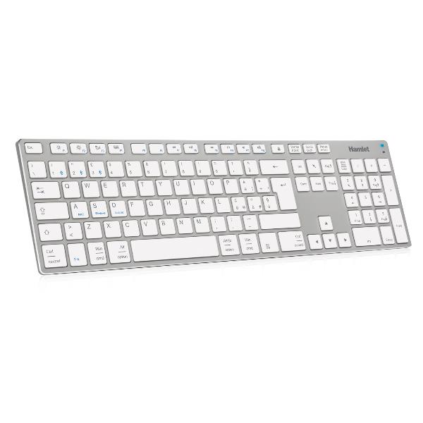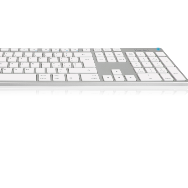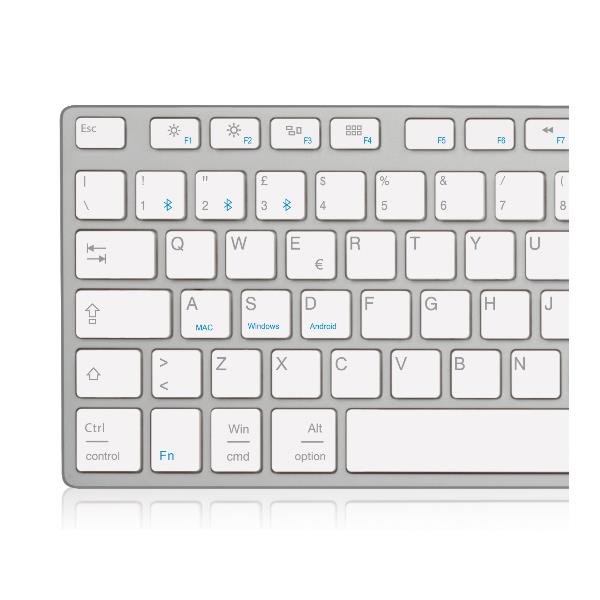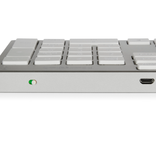 Silver Board Bluetooth è una tastiera wireless estesa con layout Italiano caratterizzata da un elegante design in alluminio. I tasti silenziosi a basso profilo sono studiati per un impiego confortevole e il meccanismo costruttivo a forbice garantisce una digitazione rapida e accurata. Il tastierino numerico è l’ideale per i fogli di calcolo e l’inserimento dati mentre la connessione senza fili Bluetooth permette una facile installazione tenendo la scrivania in ordine e libera da cavi. Silver Board Bluetooth ha un layout universale compatibile con Windows, Mac e Android. I tasti di configurazione Bluetooth permettono di collegare fino a tre diversi dispositivi e passare da uno all’altro premendo semplicemente un tasto.