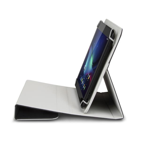 Hamlet Universal Cover 100 è una pratica custodia protettiva universale disegnata per Tablet da 9" e 10" che permette di trasportare e utilizzare il Tablet proteggendolo al contempo da graffi e urti. La custodia può essere facilmente ripiegata ed utilizzata come supporto per posizionare il Tablet con l’inclinazione ideale per una digitazione confortevole e la massima comodità di lavoro. Il Tablet è assicurato alla custodia tramite apposite clip che lasciano libero accesso ai pulsanti e alle porte laterali. La chiusura avviene tramite un lembo magnetico.