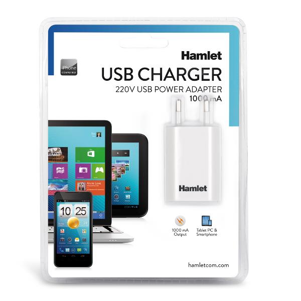 Caricabatteria USB Hamlet XPW220U2 Alimentatore 220V Bianco