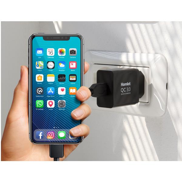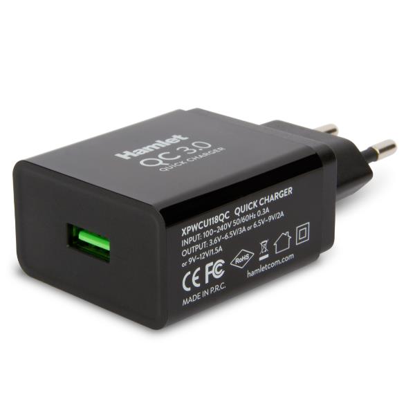 Hamlet Quick Charger è un alimentatore USB da parete da 18W dotato di tecnologia di ricarica Quick Charge 3.0 in grado di riconoscere automaticamente il dispositivo collegato e offrire una velocità di ricarica 4 volte più veloce di un alimentatore tradizionale.